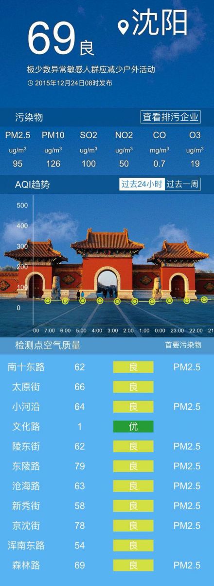 雖然今天室外溫度比較低,但是空氣卻是格外的清新。昨天來(lái)到沈陽(yáng)的這股冷空氣破壞了沈陽(yáng)上空的逆溫層,就好像揭開(kāi)了一口蒸鍋的蓋子,霧和霾就像鍋里的蒸汽一樣散發(fā)出去,留下了一個(gè)干干凈凈的城市。
