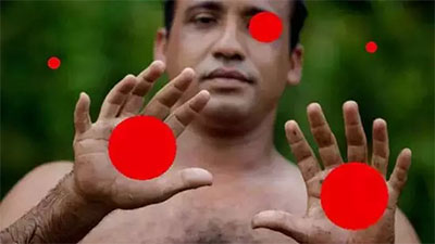 圖中的12指男人是來自古巴的Yoandri Hernandez Garrido,他每個手都有6個手指,每只腳也各有6個腳趾。如果我們一開始不提紅球的事情,相信每個人都會馬上注意到這個奇人的存在。