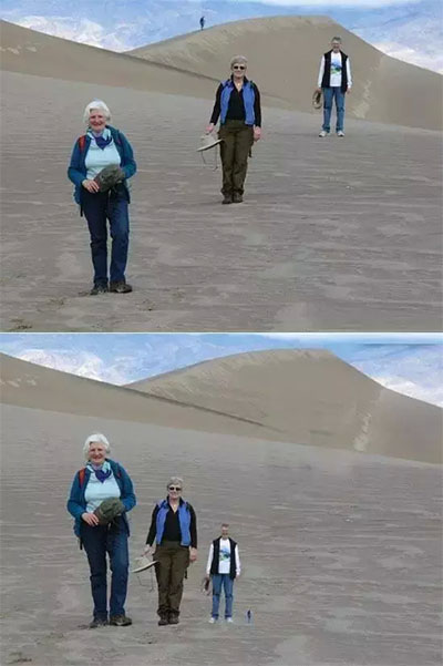 對比上下兩張圖片中的同一個人,你肯定不相信他們在上下圖片中的大小會是相同的,不信就用尺子量一量。沒錯!你的眼睛又一次欺騙了你自己!