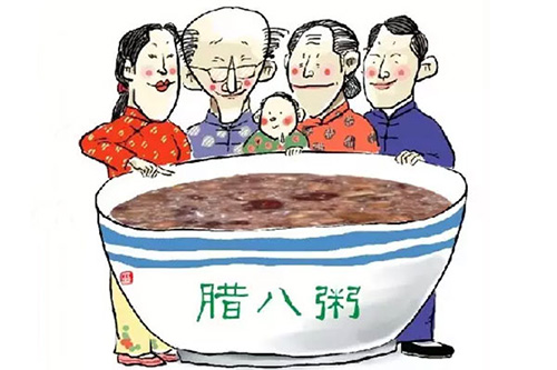 臘月初八中國(guó)人民有吃臘八粥習(xí)俗。臘八粥在古時(shí)是用紅小豆、糯米煮成,后來(lái)材料逐漸增多。