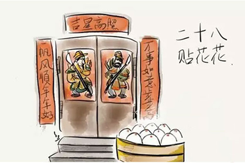 臘月二十八把面發(fā),多數(shù)地方在這一天要趕制過年的面食蒸。太原人要蒸好"糕兒饃饃兩笸籮";河北人則是"蒸棗花"預(yù)備除夕祭禮祖宗作供品;河南人也是"二十八,蒸饃炸圪塔"。只有北京人慢半拍,在這天才"把面發(fā)",等到二十九"蒸饅頭"。