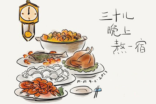 臘月三十,就是俗稱的除夕,除夕是新舊交替的時(shí)刻,這天夜間的鞭炮聲不絕于耳。早先宮廷在這之前就會(huì)放花炮,自臘月廿四日起至正月十七日止。每日放花炮,尤以臘月三十兒晚上最盛。除夕夜的活動(dòng)也是千姿百態(tài)——貼掛千,擺設(shè)天地供桌、辭歲、守歲、迎歲……