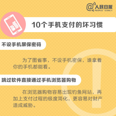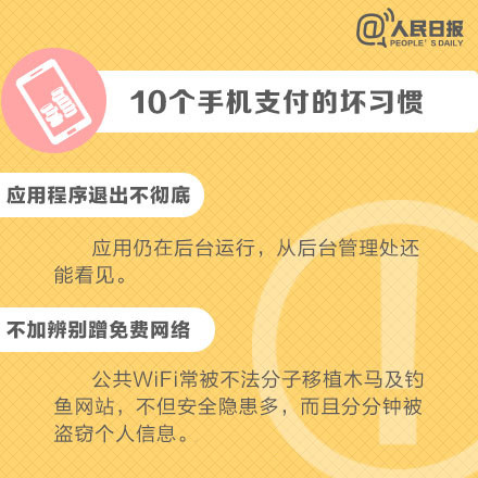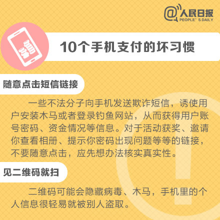 手機(jī)給人們生活、娛樂帶來方便的同時(shí),也給我們帶來了安全隱患,使用手機(jī)時(shí)的一些"壞習(xí)慣"一定要改掉,保護(hù)好個(gè)人網(wǎng)絡(luò)賬戶安全,避免不必要的損失。