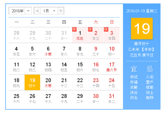 今天是2016年1月19日星期二。