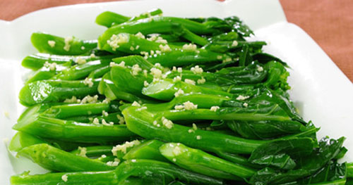 1、芥蘭洗凈,去掉葉子,將菜梗根部老皮去除,然后切成1cm長的斜段。