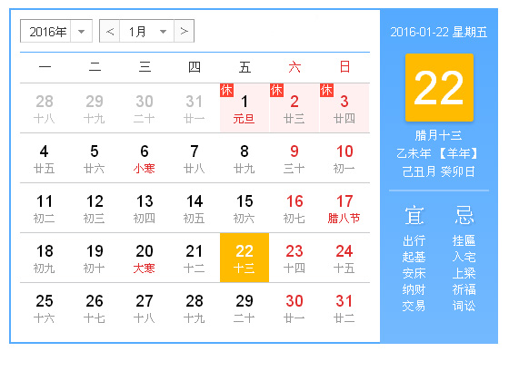今天是2016年1月22日,星期五。終于熬到了最冷一周的周五,周末可以暖和的宅在家里。周末有計劃出行的朋友,一定要注意保暖。