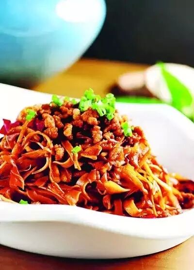 這是根據(jù)川菜演變而來(lái)的菜品,與麻婆豆腐比,這道菜口味更重。在炒制時(shí),除了加入豆瓣醬,還加入刀口辣椒,使菜品口味更辣。