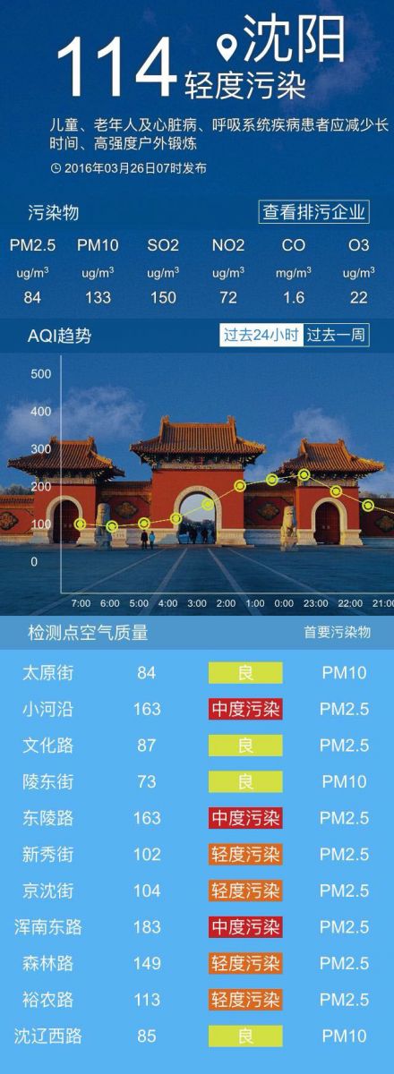 接下來(lái)共同關(guān)注沈陽(yáng)未來(lái)幾天的具體天氣情況:今天白天陽(yáng)光普照,但今天的空氣質(zhì)量不是特別理想,您選擇今天外出游玩,需要做好防霾措施,今天白天最高氣溫在15℃左右,西南風(fēng)3-4級(jí);夜間天氣晴朗,最低氣溫在-2℃左右。