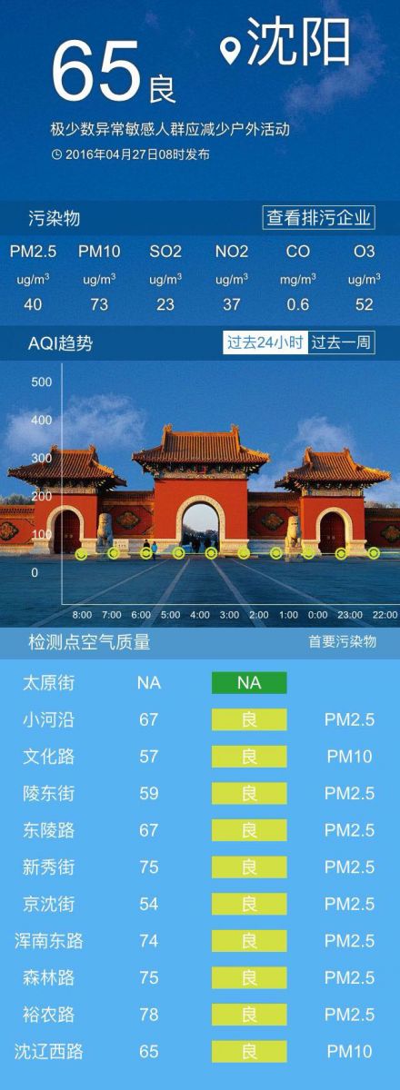 接下來共同關注沈陽未來幾天的具體天氣情況:今天白天天空的云量將慢慢變少,變薄,因而缺少不了陽光的相伴,風力不大,北風3-4級,空氣質(zhì)量良,白天最高氣溫為21℃左右;夜間最低氣溫為7℃左右。