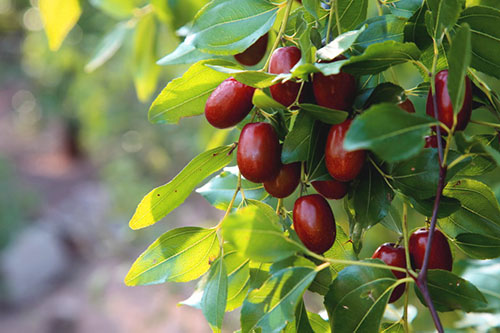 孫家灣大棗色澤深紅锃亮,以個(gè)大、核小、皮薄、肉脆著稱,其注冊(cè)商標(biāo)"叁山牌"獲得國(guó)家綠色食品標(biāo)志商標(biāo)使用權(quán)。