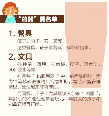 日前,一3歲男孩在拿金屬筷子玩時(shí)從椅子上跌落,筷子插進(jìn)臉頰。送醫(yī)途中,父母為拔不拔筷起了爭執(zhí)。所幸在媽媽堅(jiān)持下沒拔,除了插穿鼻竇,沒造成其他傷害。醫(yī)生:如貿(mào)然拔出,可能引發(fā)二次傷害。傷娃"兇器"黑名單。