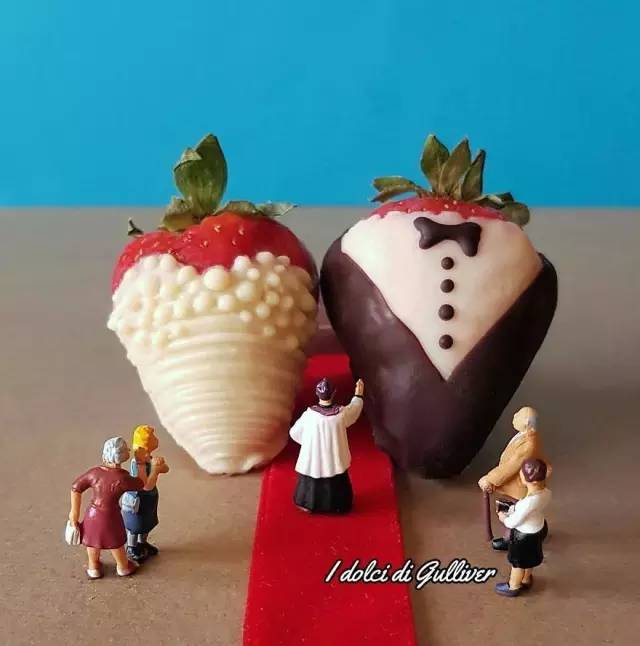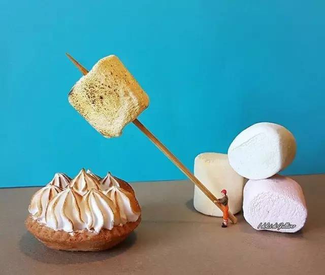 有一天,Matteo Stucchi 看到了一些藝術(shù)家的微觀雕塑作品,于是靈感大發(fā),想著能不能和自己做的美味結(jié)合在一起,想到立馬行動,于是嘗試了之后,就有了下面這些作品······