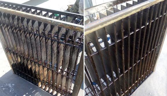 1.切斷電源,第一步重點清洗通過排煙口與煙罩同步平行的排煙道。商業(yè)場所的廚房排煙系統(tǒng)都是比較大型的,不像家用的抽油煙機那樣可以將每個部分都拆下來,比如排煙罩的清洗就需要技術人員進入煙道內,先用特制工具將較厚的一部分油污鏟除。因為堆積了大量的油污,需要用到比較專業(yè)的高效化油劑,用高壓清洗機噴射化油劑后半小時,用清水沖洗干凈。