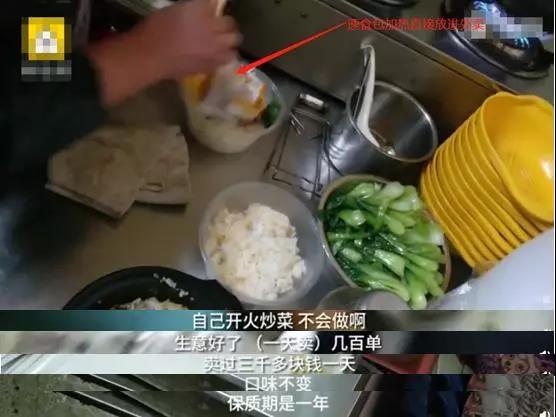 有人在外賣平臺上訂餐后,外賣餐館將速食料理包放入米飯中,在微波爐中加熱后即完成全部制作過程。外賣老板還承認(rèn),自己不會做飯!就依靠這些速食料理包,每天可接幾百單,最高收入達(dá)3000元一天。