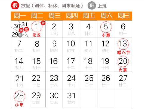 元旦假期安排