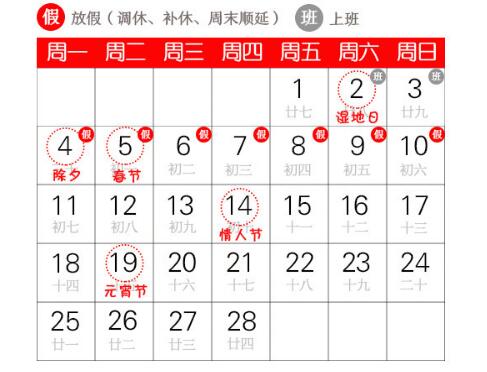 2019年春節(jié)是2月5日(星期二)