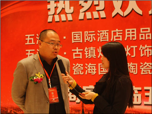2014年4月22日,我公司受邀參加在沈陽新都綠城喜來登酒店舉辦的沈陽五洲城招商大會暨國際酒店用品展貿(mào)中心簽約儀式。我公司總經(jīng)理王迪凡先生在會場接受了來自慧聰網(wǎng)記者的專訪,并發(fā)表了對該招商大會的感想。他認為:"五洲城的規(guī)模、營銷布局以及招商的優(yōu)惠政策都讓他很感興趣,他期待著在五洲城的帶領(lǐng)下向更高端的市場邁進。對于跟五洲城的合作,他充滿著信心和期待。"