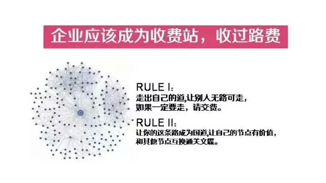 今天這個時代,每一個企業(yè)都應該找到自己的路,設置自己的收費站,來靠收費過活。具體而言之,就是兩點規(guī)則: