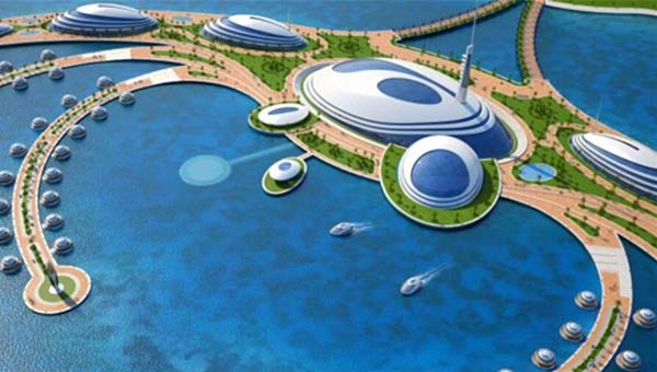 卡塔爾將在海上建一座章魚式酒店,填海造出的彎道從飯店大堂延伸出去酷似章魚的腕,腕上是一座座圓形套房,像是腕上的吸盤。