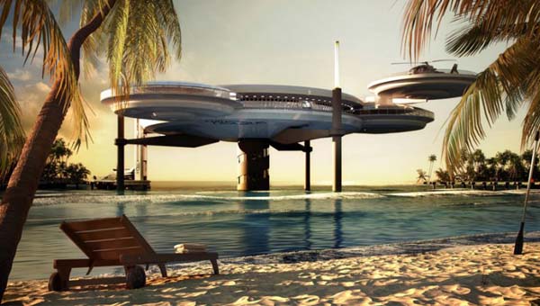 酒店水下部分位于10米深的海中,由21個(gè)房間構(gòu)成,并與水下潛水中心和一個(gè)酒吧連接在一起。不用擔(dān)心安全,當(dāng)遇到險(xiǎn)情時(shí),整個(gè)水下圓形建筑可自動(dòng)上升到水面。