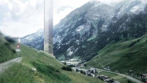 美國(guó)建筑師湯姆·梅恩設(shè)計(jì)了一座矗立在阿爾卑斯山上的酒店"7132塔",遠(yuǎn)觀就如一把利劍插入山中。