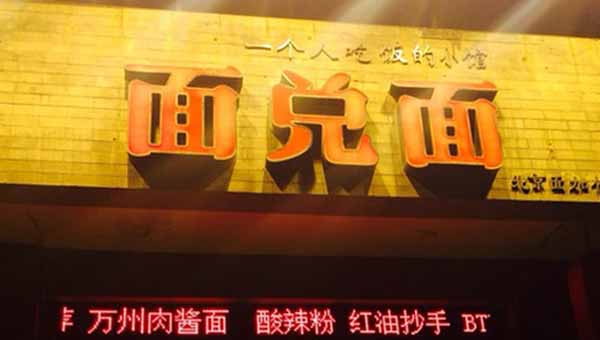 "面兌面"聽名字,就知道這是一家頗有意思的面館,在北京共有5家店,面積從60到100平米不等,是名副其實的火爆小店。在店門口,"一個人吃飯的小館"非常顯眼,一個90平米的門店,賣著人均20元不到的菜品,日營業(yè)額大概在5000多元。