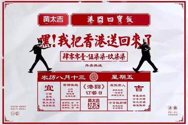 9月15日,黃太吉放出一張題為"嘿,我把香港送回來了"的海報(bào),引起了大家的注意。