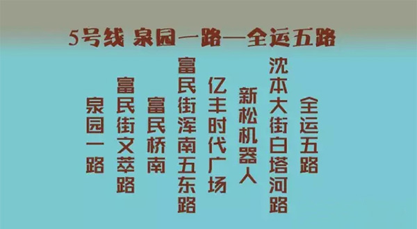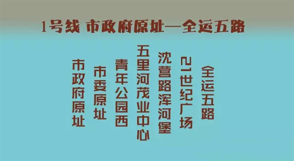 金山小區(qū)(210站點)—北陵公園(210站點)—遼寧中醫(yī)(220站點)—市殘聯(lián)(214站點)—青年北大街(214站點)—市委原址(214站點)—華潤中心(214站點)—沈營路渾河堡(214站點,南行單向)—21世紀廣場(100站點)—全運五路公交停車場