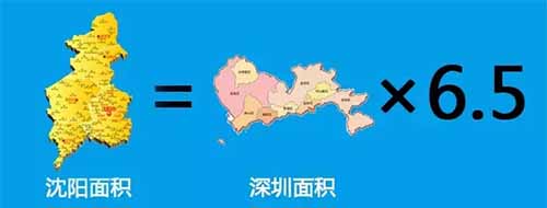 沈陽=深圳×6.5(深圳面積1996.8平方公里)