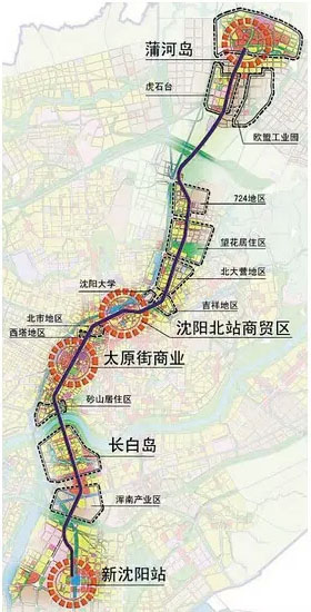 沿線貫穿了沈陽北站、沈陽南站等重要公共交通樞紐,沈陽北站片區(qū)、太原街等金融商貿(mào)區(qū),砂山、望花、虎石臺、蒲河島等居住區(qū),以及沈陽大學(xué)、渾南產(chǎn)業(yè)區(qū)、歐盟工業(yè)區(qū)等科教、產(chǎn)業(yè)區(qū)。