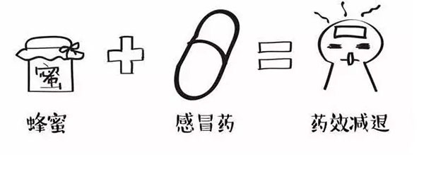 感冒藥如泰諾、快克、感立克、感冒清等都含有對(duì)乙酰氨基酚,遇到蜂蜜會(huì)形成一種復(fù)合物,減弱退燒作用。同理,凡是含蜂蜜的中成藥,如止咳糖漿、川貝枇杷膏等都不宜和上述感冒藥同服。