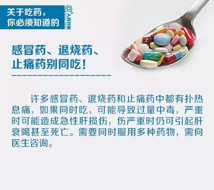 許多感冒藥、退燒藥和止痛藥中都有撲熱息痛(請(qǐng)仔細(xì)閱讀說(shuō)明書)。如果同時(shí)使用兩種感冒藥,或同時(shí)吃退燒藥和止痛藥,造成撲熱息痛攝入過(guò)量,會(huì)造成急性肝損傷,嚴(yán)重會(huì)引起肝衰竭甚至死亡。