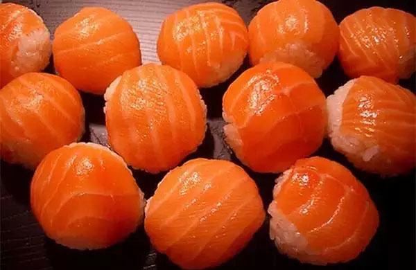 手掬壽司,把米飯和魚生團(tuán)成球形捏制而成。